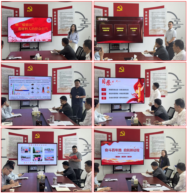 来自12个党支部的党员轮番登台,用8分钟的“黄金时间”把宏大主题拆成“小切口”,把深邃理论讲成“家常话”,为现场观众奉献了一场有高度、有深度、更有温度的“思想盛宴”。陈立明老师以《基于社会主义核心价值观赋能AI材料与器件的研发》为题,从AI的视角出发,生动展示了从“技术导向”到“价值引领”的教学实践;王毅璠老师以《党旗引领下的钢铁突围:从绿色炼铁到资源自强》为题,把党支部建在科研链上的故事娓娓道来;孙艳老师以《从“嫦娥钢”看材料人的使命担当》为题,深刻阐释了新时代材料人应有的责任与担当;李晨倩老师以人民英雄纪念碑浮雕切入,用“表情—线条—动作”解码“精神—信仰—担当”,让抗战记忆从平面走向立体。