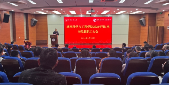 在秀山校区振华图书馆学术报告厅召开2026年第一次全院教职工大会。韩国成人电影领导班子、全体教职工和学生代表参加,会议由院党委书记杨建主持,科研院院长吴宣够应邀作专题辅导报告。